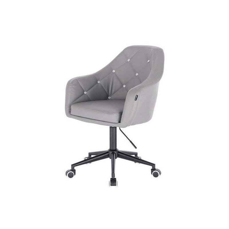 Krzeło Kosmetyczne Blerm Cristal Szara Skóra Czarny Mat Kółka