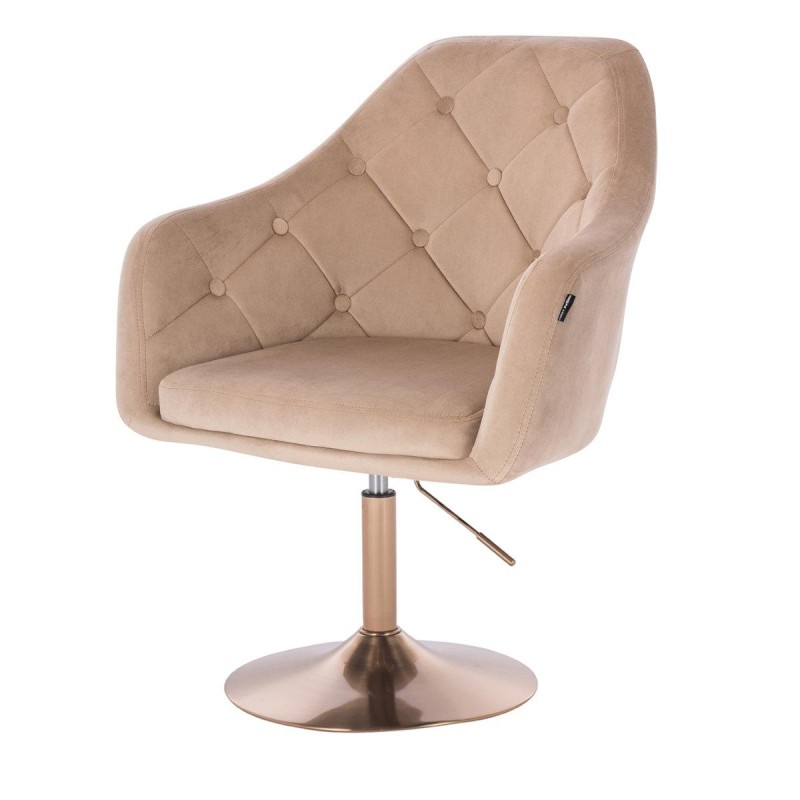 Krzesło kosmetyczne BLERM N Latte welur złota podstawa