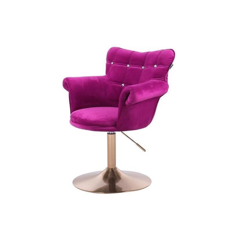 Krzeło Kosmetyczne Lora Cristal Cn Fuksja Welur Złota Podstawa