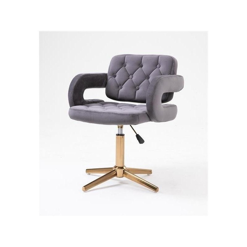 Krzeło Kosmetyczne Surf Cross Grafitowy Welur Złota Podstawa