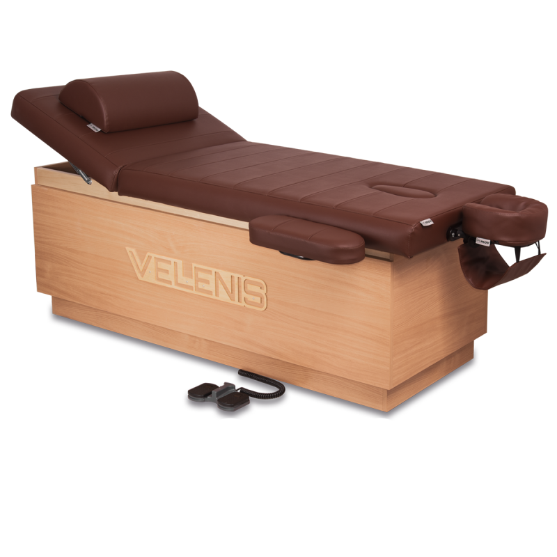 Leżanka Velenis P wyróżnia się nie tylko stylowym designem z drewna o eleganckim wykończeniu i wyraźnym logo Velenis, ale także niezrównaną funkcjonalnością. Dzięki elektrycznej regulacji wysokości sterowanej za pomocą pilota nożnego, terapeuci mogą płynnie i wygodnie dostosować pozycję leżanki do potrzeb klienta. Regulowane oparcie i segmenty na ramiona pozwalają na pełne dopasowanie, co zwiększa komfort i wsparcie podczas każdego zabiegu. Ta leżanka jest idealna zarówno do masażu klasycznego, jak i specjalistycznych terapii, nadając gabinetowi prestiżowy charakter.
