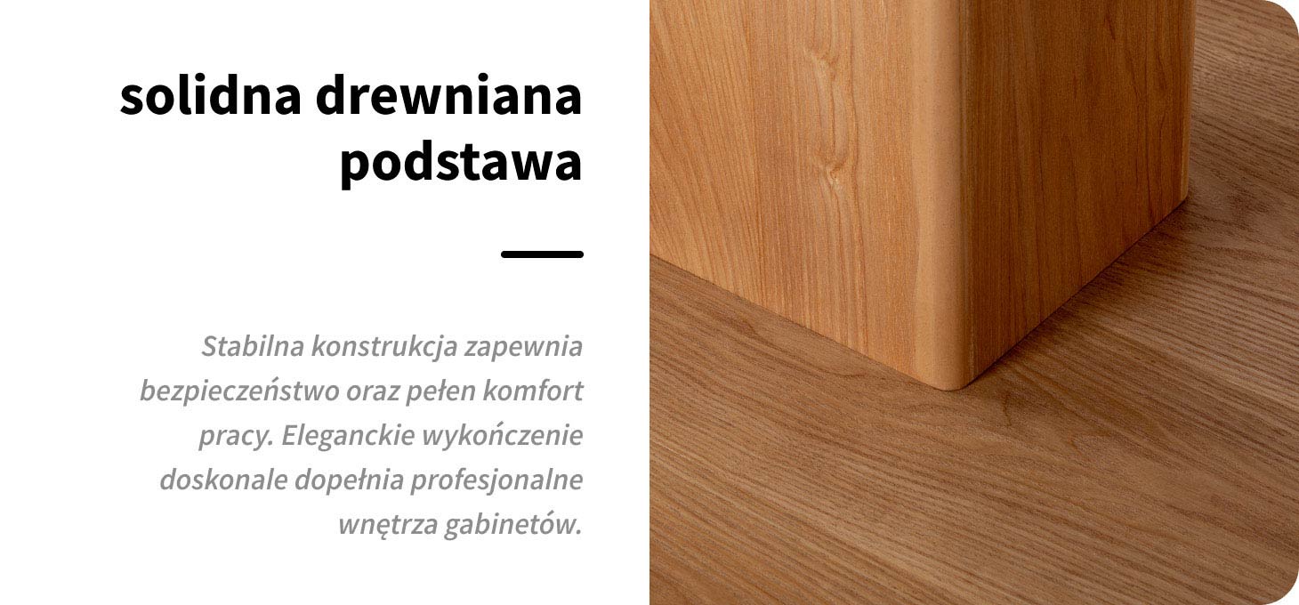 Nowoczesna leżanka zabiegowa z solidną, drewnianą podstawą łączy maksymalną stabilność z wyjątkowym stylem. Dzięki konstrukcji gwarantującej pewne podparcie, każdy zabieg kosmetyczny, pielęgnacyjny, relaksacyjny czy masaż staje się bezpieczny i komfortowy – zarówno dla klienta, jak i dla profesjonalisty. Stonowana kolorystyka oraz starannie wykończone detale sprawiają, że leżanka wpisuje się w eleganckie wnętrza gabinetów kosmetologicznych, salonów masażu oraz stref SPA i wellness. Przemyślany design podkreśla profesjonalizm gabinetu, zwiększając zaufanie klientów i podnosząc postrzeganą wartość oferowanych usług.