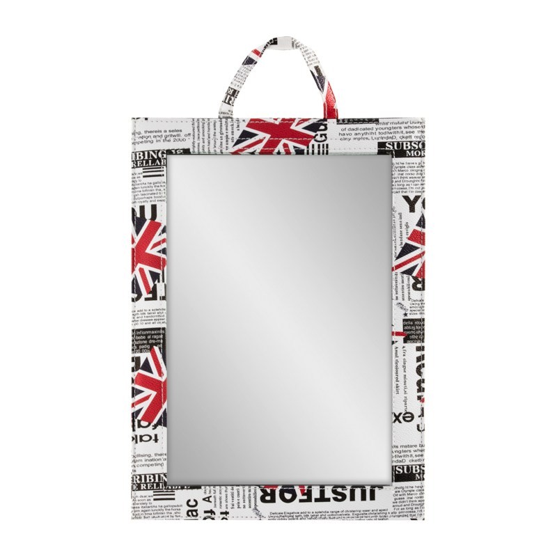 Lustro fryzjerskie w obudowie z motywami flagi UK i uchwytem . Idealne do pracy w salonie fryzjerskim, by pokazać klientowi fryzurę z tyłu głowy.