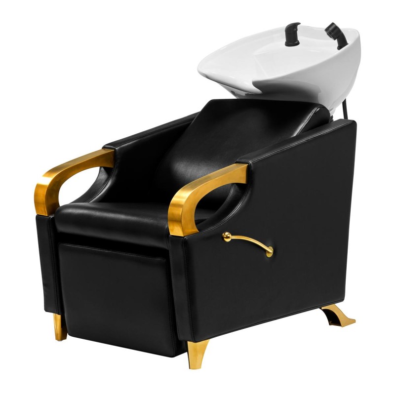 Myjnia Fryzjerska Studio Line C019G w kolorze złoto-czarnym to idealne rozwiązanie dla profesjonalnych salonów fryzjerskich. Łączy w sobie elegancję oraz funkcjonalność, zapewniając komfort klientom podczas każdej wizyty.