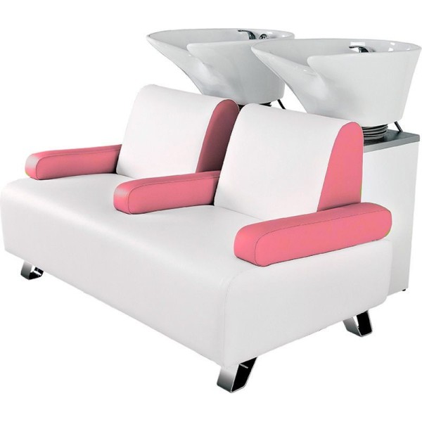 Myjnia fryzjerska podwójna pozwala na jednoczesne korzystanie z dwóch stanowisk, co zwiększa komfort i wygodę podczas strzyżenia oraz mycia włosów. Zajmuje mniej miejsca niż dwie myjki fryzjerskie.