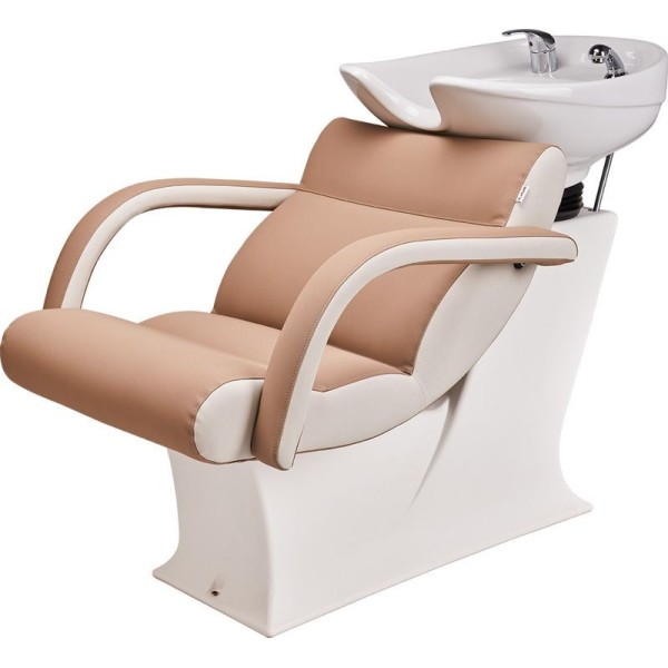 W hurtowni Ever Sun znajdują się też myjnie wolnostojące z wygodnym siedziskiem, podłokietnikiem i wyprofilowanym oparciem. To najbardziej komfortowe rozwiązanie do mycia głowy podczas zabiegów fryzjerskich.