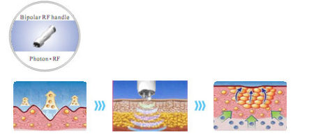 RF przenikając przez skórę nagrzewa ją przez co mobilizuje podskórny kolagen do kurczenia się. Dzięki temu skóra staję