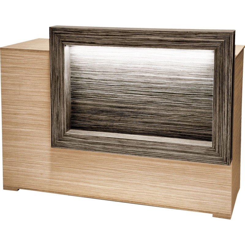 Recepcja Roma to model o nietypowych kształtach. Posiada niesymetryczne zdobienie frontu. Recepcja wykonana jest z płyty meblowej, dostępna w 16 kolorach i strukturach. Istnieje możliwość wykonania zdobienia w innym kolorze niż całość. Front posiada podświetlenie w standardzie.