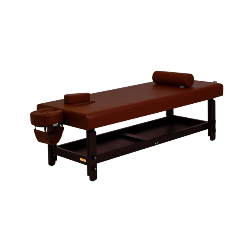 - Aesthetic focus: to rozwiązanie, które najczęściej wybierają projektanci szukający solidnego stołu o naturalnym, bukowym wykończeniu i tapicerce dopasowanej do koncepcji wnętrza spa lub studia masażu tajskiego.