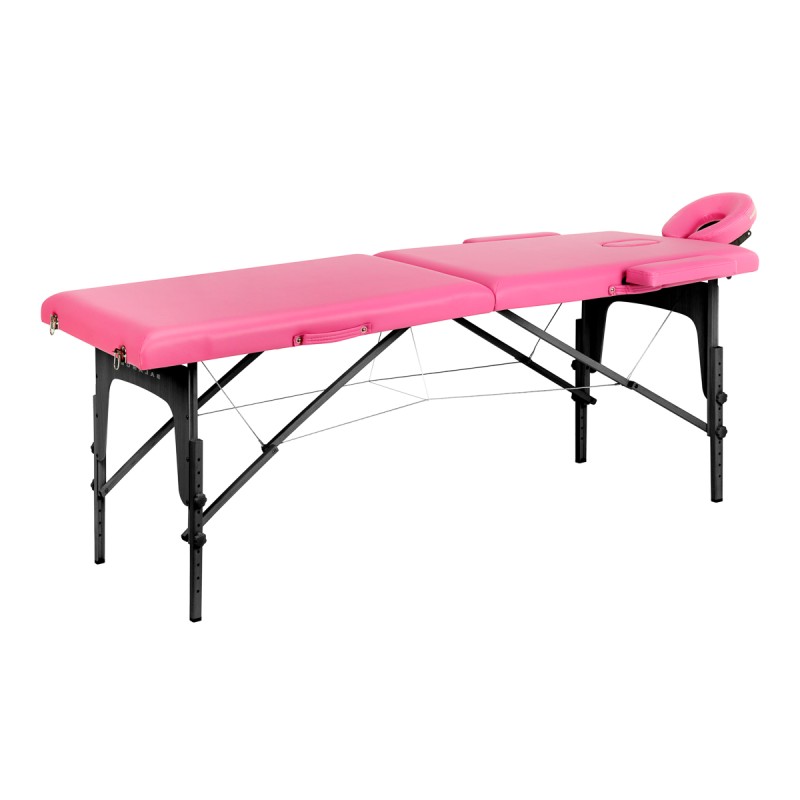 Stół składany do masażu drewniany Balance 2 segmentowe róż czarne drewno