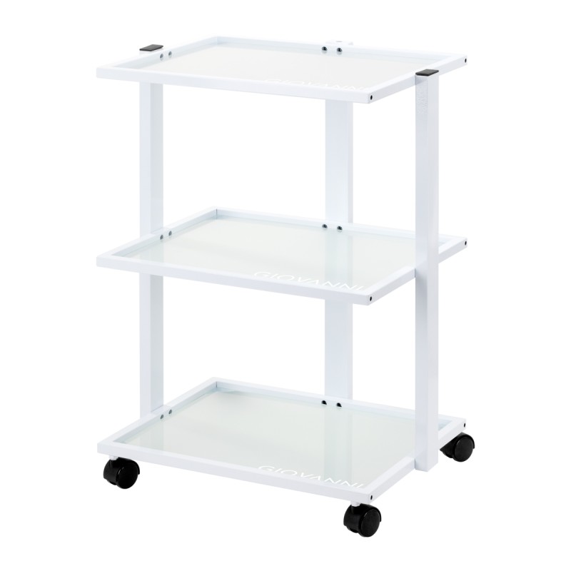 Stolik kosmetyczny Giovanni E40 to funkcjonalny mebel, idealny do salonów kosmetycznych i gabinetów SPA. Stabilna, a jednocześnie lekka konstrukcja zapewnia komfort pracy i łatwość manewrowania. Trzy szklane półki umożliwiają wygodną organizację kosmetyków, akcesoriów oraz sprzętu niezbędnego do zabiegów. Minimalistyczne wykończenie podkreśla profesjonalny charakter stolika.