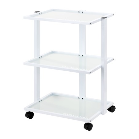 Składa się z mobilnej konstrukcji na kółkach, co umożliwia łatwe przemieszczanie w trakcie zabiegów. Zwykle wyposażony jest w blat oraz kilka półek lub szuflad, co pozwala na wygodne przechowywanie narzędzi, kosmetyków, lakierów i sprzętu, zapewniając szybki dostęp do niezbędnych akcesoriów. Dzięki swojej funkcjonalności pomaga w organizacji pracy, co przekłada się na większą efektywność i wygodę podczas wykonywania zabiegów. Solidna budowa oraz estetyczny wygląd podkreślają profesjonalizm gabinetu.