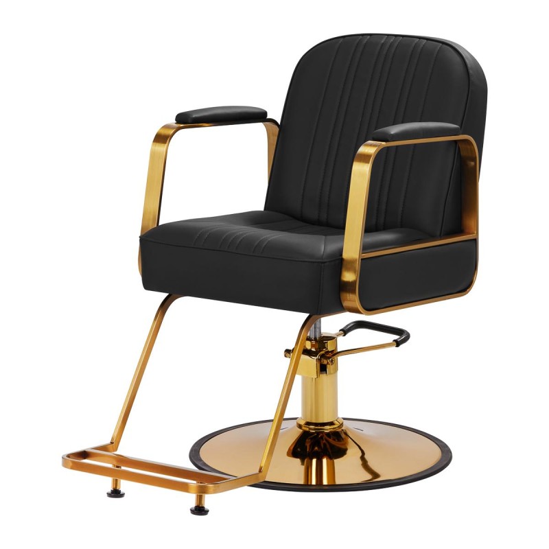 Fotel fryzjerski Acrio w eleganckim połączeniu złota i czerni to doskonały wybór dla profesjonalnych salonów.