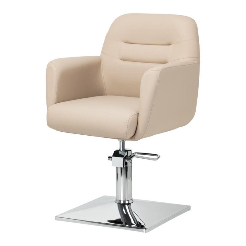 Fotel fryzjerski Monaco w kolorze beżowym to elegancka i komfortowa propozycja dla każdego salonu fryzjerskiego.