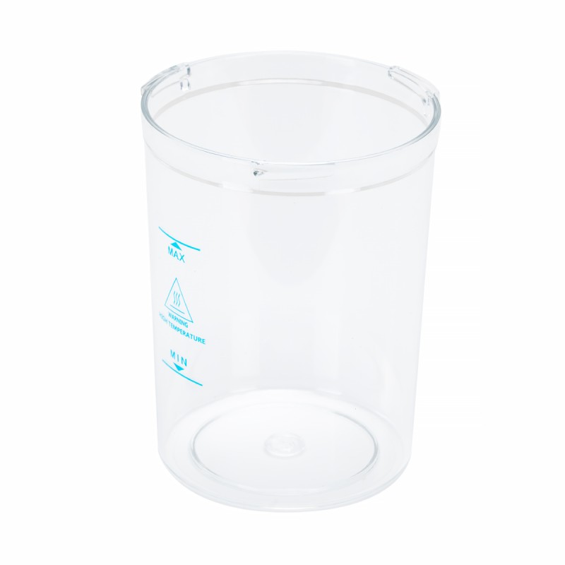 Wymienny pojemnik wykonany z transparentnego tworzywa sztucznego, odpornego na wysokie temperatury. Szklanka posiada oznaczenia minimalnego i maksymalnego poziomu wody, co ułatwia bezpieczne użytkowanie. Lekka konstrukcja i gładka powierzchnia zapewniają łatwość czyszczenia. Wymienny pojemnik na wodę o średnicy +/- 11 cm i zaznaczonej pojemności maksymalnej 750 ml, odpowiedni do wapozonów Estello D-20 i D-21 z lampą lupą.