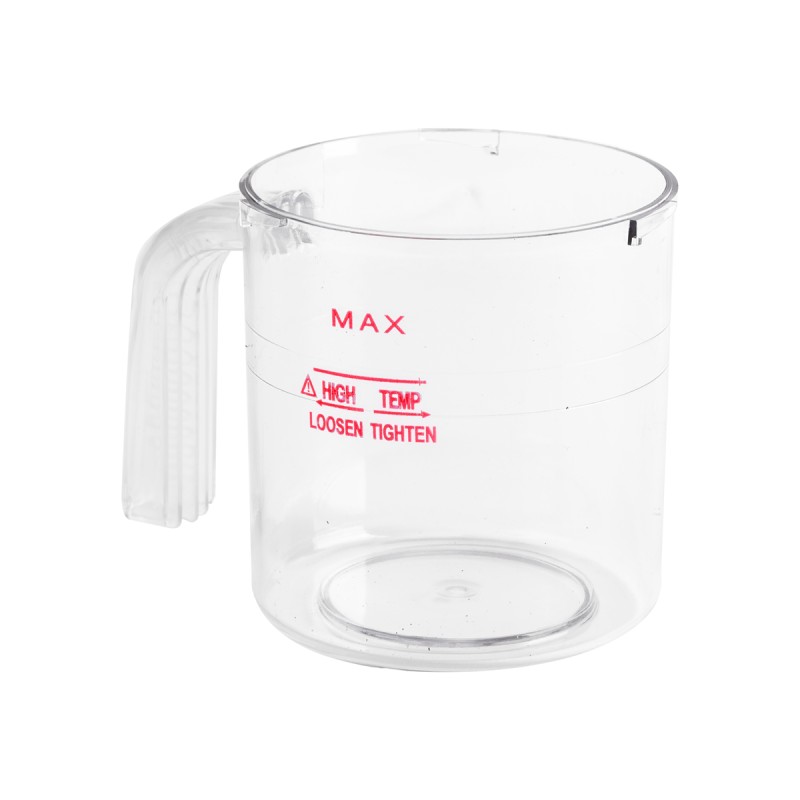 Wymienny pojemnik wykonany z transparentnego tworzywa sztucznego, odpornego na wysokie temperatury. Szklanka posiada oznaczenia maksymalnego poziomu wody, co ułatwia bezpieczne użytkowanie. Lekka konstrukcja i gładka powierzchnia zapewniają łatwość czyszczenia. Wymienny pojemnik na wodę z uchwytem ma średnicę +/- 9 cm oraz jest odpowiedni do wapozonów Giovanni F-17.