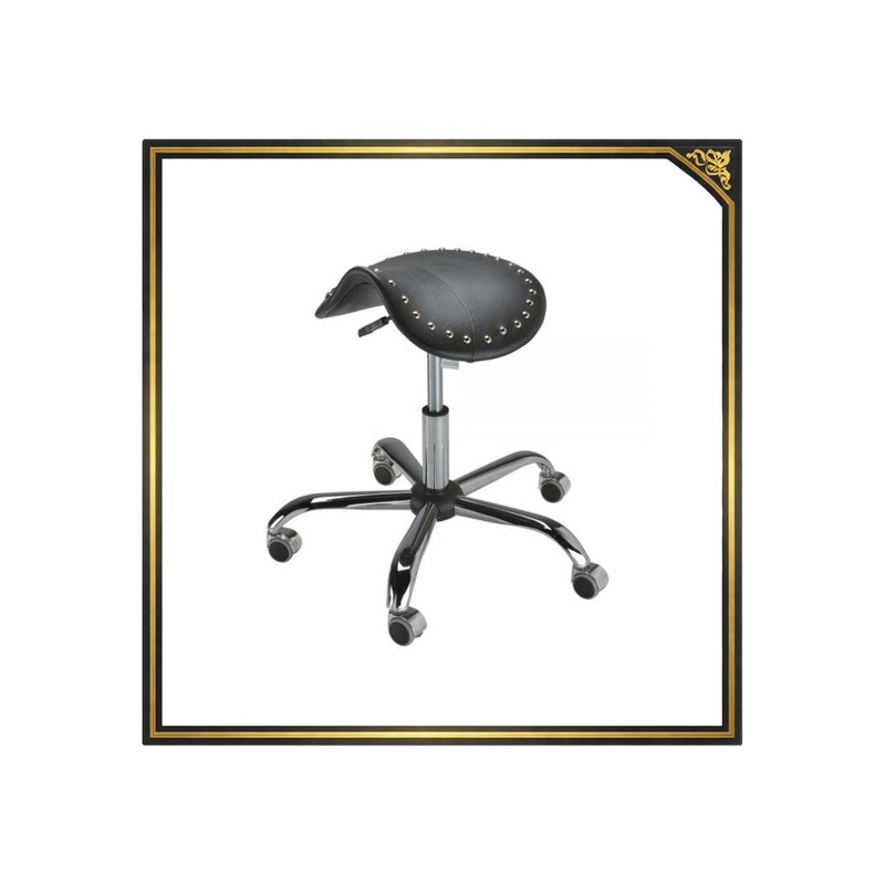 - Tapicerka z ozdobnymi ćwiekami – nadaje profesjonalny, elegancki charakter stanowisku i ułatwia utrzymanie estetyki salonu; ćwieki poprawiają również przyczepność siedziska, co zwiększa komfort pracy.