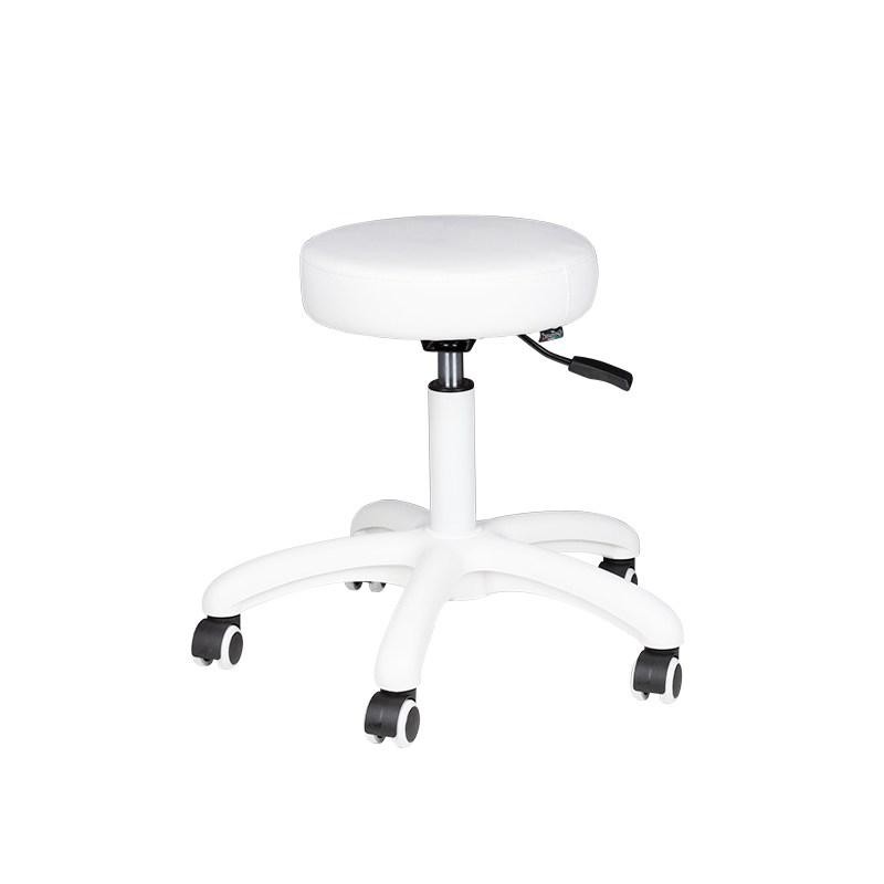 Wygodny taboret kosmetyczny, stabilny na pięcioramiennej podstawie, z gumowanymi kółkami . Niezbędny mebel w gabinecie kosmetycznym.