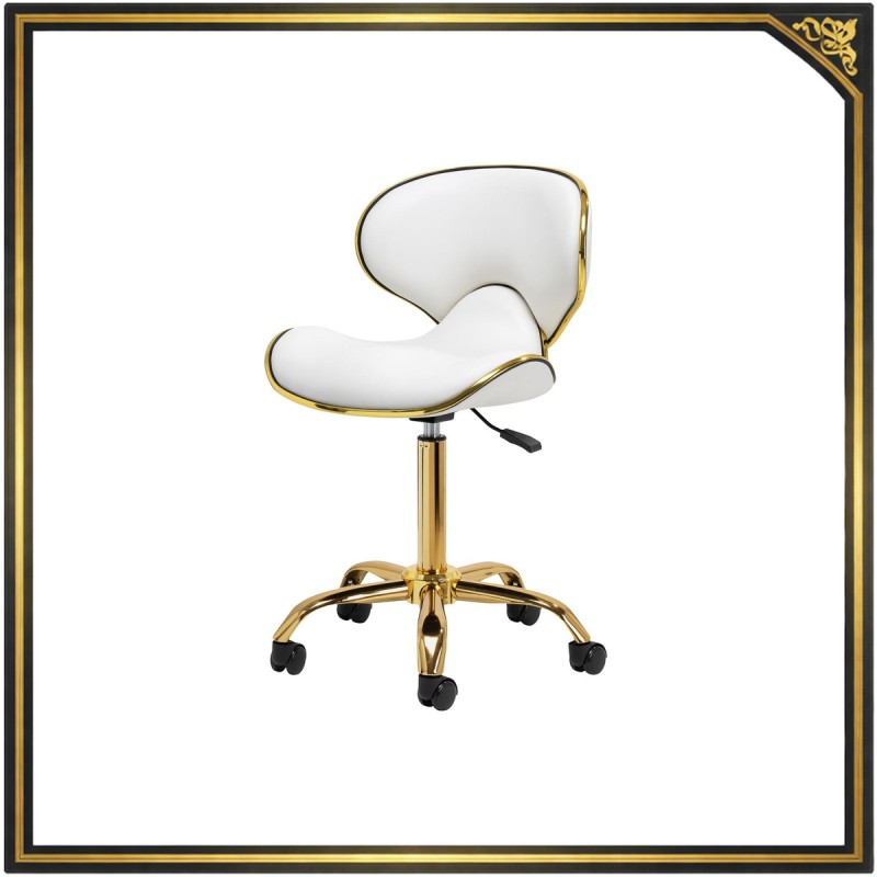 Taboret kosmetyczny Studio Line Q-4599G w kolorze złotym i białym to idealne rozwiązanie dla profesjonalistów w branży kosmetycznej. Jego elegancki design oraz funkcjonalność sprawiają, że jest on nie tylko stylowym dodatkiem, ale także praktycznym elementem wyposażenia każdego salonu.