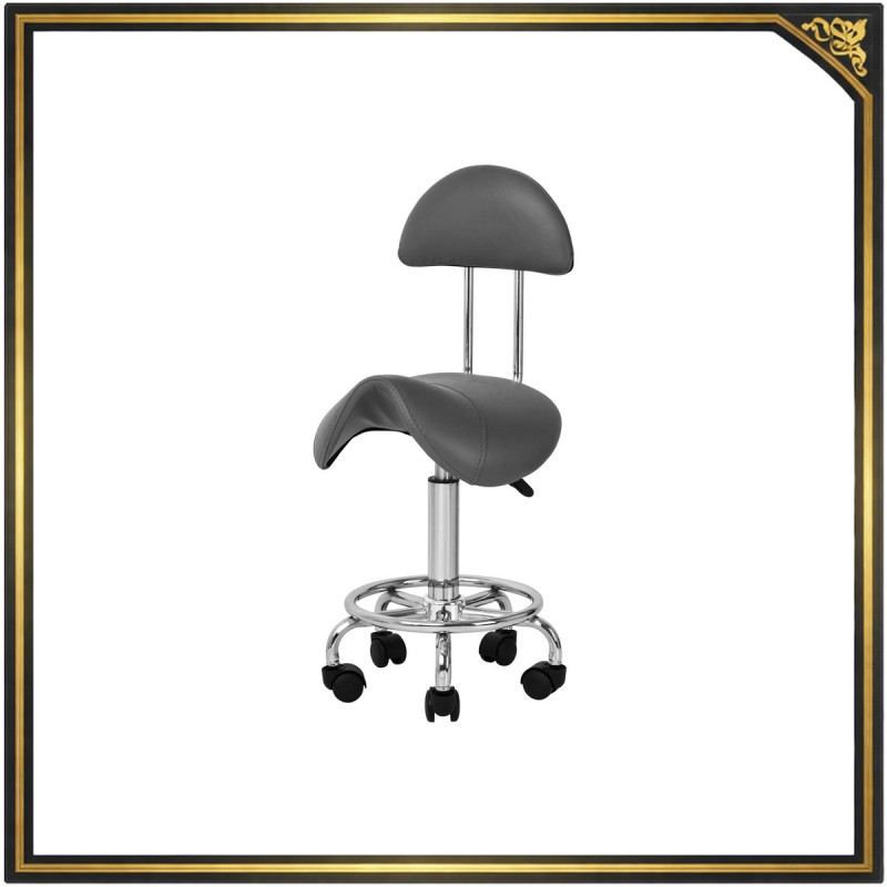 Taboret kosmetyczny szary z oparciem to wygodne i stabilne rozwiązanie dla każdego gabinetu kosmetycznego. Zapewnia komfort pracy dzięki profilowanemu siedzisku i mobilnej pięcioramiennej podstawie.