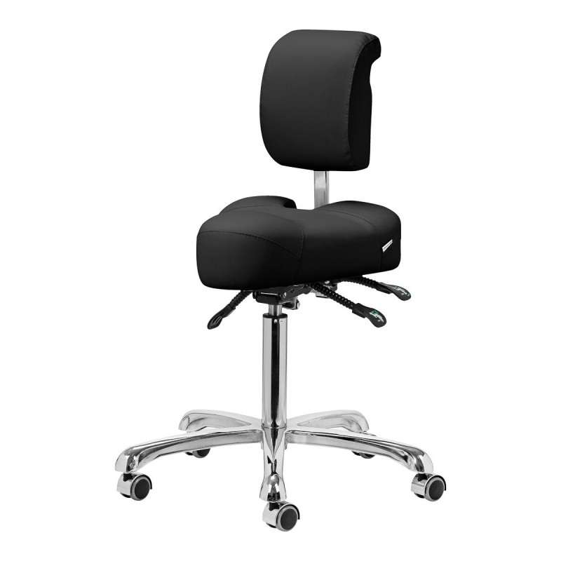 - Taboret podologiczny 1005 Estello czarny o unikalnym kształcie i ergonomicznym oparciu sprawdza się w profesjonalnych gabinetach.